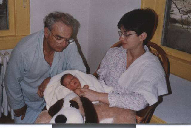 Not too many pictures of the great-grandchildren in Nanny's box. There's one or two of Sammi, and a couple of Felicia, about this age also (that's coming up). That's Bill Katz (yes, the same guy that was in the Army pictures), Robbie, and little, bitty, wrinkly Sammi. I'm sorry Nanny never got to know this generation. But she was there at the start!