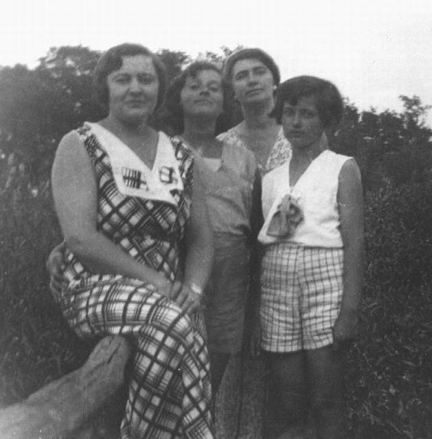 Here's Rose Jacoby Weiss and Aunt Celia with the girls... my mother, Evelyn, and Aunt Zelda again...