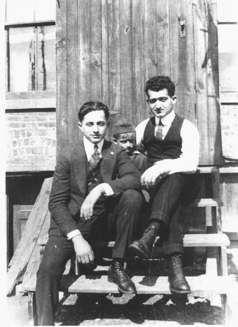 Gosh, these are ALL my favorite pictures. Here's a very young Al Weiss (my grandfather) on the left, an even younger Milton Engel in the middle, with his father, Ben Engel.