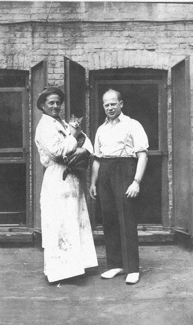 Another gem! The previous galleries had pictures of Gramps (Al Weiss) at work in his meat-packing personna. I LOVE these pictures!! That's Gramps holding the cat (very sanitary, I'm sure), I don't know who the other man is, and I don't know any way of ever finding out.