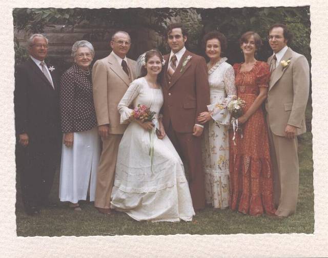 Paul and Nina's wedding. Left to right, Al & Rose Weiss, Bill Katz, Nina & Paul, Zelda Katz, Robbie and Nicky Tessler.