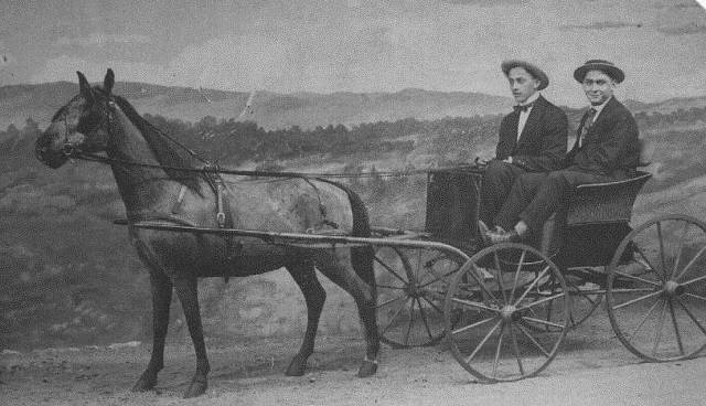 Aha! The horse's head is back! One of the previous galleries had this same picture with the horse's head cut off! But Zelda had the original... intact! So I present it here. That's Gramps and Gene Kohn in the carriage. The souvenir picutre was taken at North Beach, Long Island (wherever that is). Gramps' address at that time is written on the back of this card as 339 E 66 St, "City".